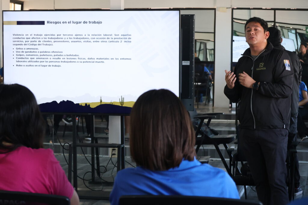 Por su parte, el profesional Danilo Tapia, capacitó a los asistentes en relación a la identificación y prevención de riesgos en el lugar de trabajo, tanto en los ámbitos laboral, sexual y psicosocial. Además, entregó detalles sobre protocolo de denuncia, qué hacer y a quién acudir ante una situación de acoso o violencia.